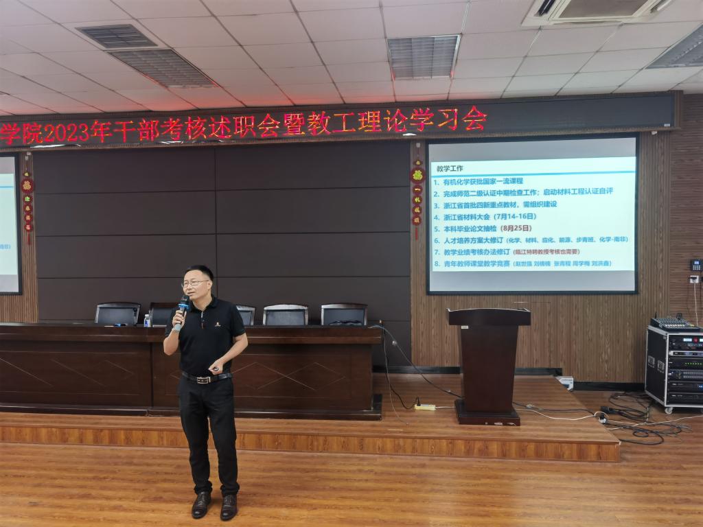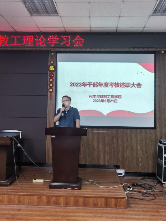 杨植经理和刘吟书记从自身工作出发,向全体教职工作述职报告,在学校组织部监督下,全体教职工对学院领导班子和各科室负责人开展了2022-2023学年民主测评工作。