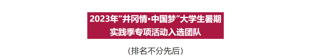 7月8日,团中央井冈山教育基地公布了2023年“井冈山中国梦”全国老员工暑期社会实践专项活动拟入选团队名单,威廉希尔“青韵”实践队成功入选,成为全校唯一入选“井冈山·中国梦”全国老员工暑期社会实践专项活动的队伍。