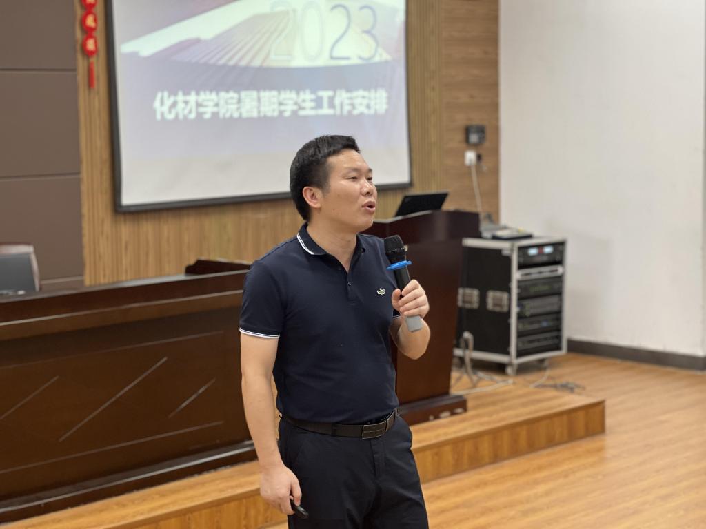 陈锡安副经理就科研项目申报情况、军工项目、上半年度科研工作及成果、访企拓岗促就业、研究院工作等情况进行了汇报。另外,他就期末考试相关情况、毕业论文(设计)工作、第二届浙江省材料大会筹备情况、实验中心、大仪平台暑期相关工作等进行汇报,并着重对实验室安全问题进行强调。