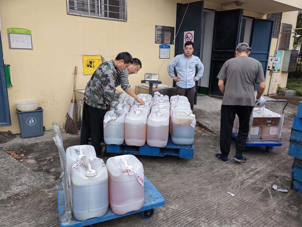 在国资与实验室管理处支持下,公司实验中心组织了亚运会后实验室危险废弃物的清运工作。10月12日,公司实验中心组织了一次实验室危险废弃物的收集工作,以便使学院危险废弃物存量最小化。