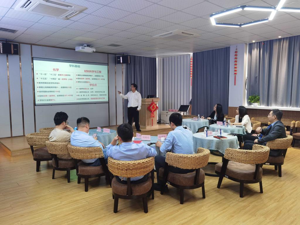 杨植经理从学院基本情况、学科特色、化学博士点建设、材料博士点培育等方面进行了介绍。姚韵靓经理对公司获批化学一级博士学位授予单位表示祝贺,认为公司学科实力强劲,专业平台良好,团队队伍强大,是对标学习的好目标,他向公司介绍了学院的基本情况、护理学科研究特色及博士点培育思路,并表示“申博”的成功是团队建设历史性的突破,公司成功申博的经验十分值得借鉴。随后双方就博士点申报经验及建设情况展开深入讨论,并希望今后能够进一步加强交流与合作。